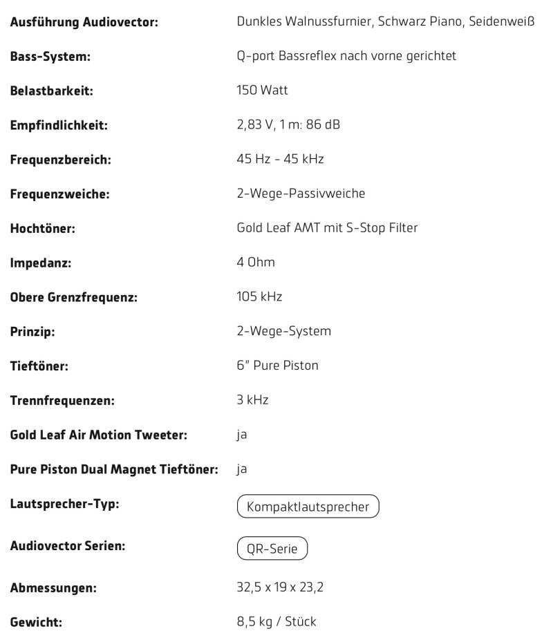 Das beginnt bei der Zutatenliste mit AMT-Hochtöner, Doppelmagnet-bestücktem Tiefmitteltöner sowie dem fehlerfrei gefertigten Gehäuse und findet seinen Höhepunkt schließlich in einem präzisen, fokussierten, plastischen und transparenten Klangbild, das den Klassenmaßstab verschiebt. Wenn, wie es so oft gefordert wird, auch junges Publikum für High-End-Audio begeistert werden soll, dann gibt es jetzt mit den Audiovector QR 1 das perfekte Angebot. Sie sind eine absolut wertvolle Bereicherung des Marktes."