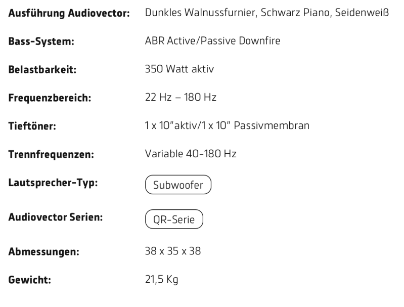 Dynamischer und kraftvoll Subwoofer als perfekte Ergänzung der QR-Stand- und Regallautsprecher
