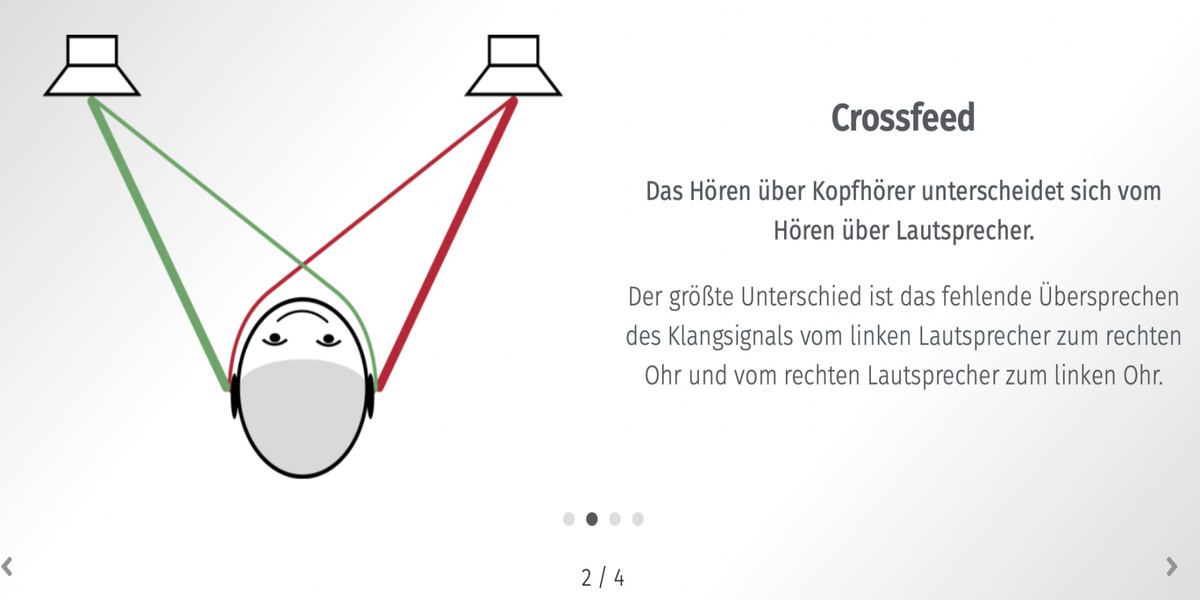 Crossfeed bestimmt das Übersprechen der Kanäle, die sogenannte interaurale Pegeldifferenz.